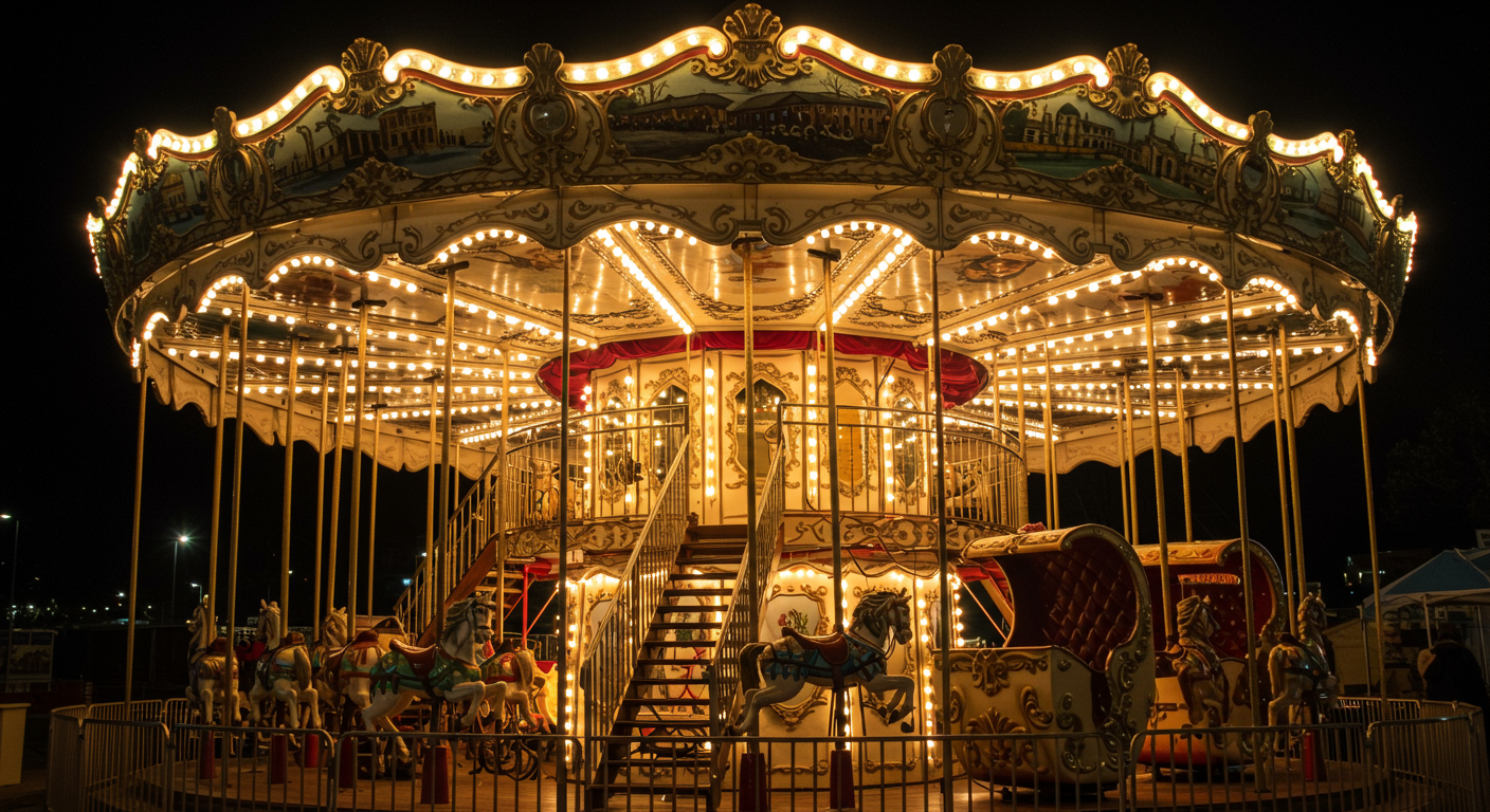 San Francisco Carousel, which was hand-painted in Italy to feature SF landmarks like the Golden Gate Bridge and Lombard Street.