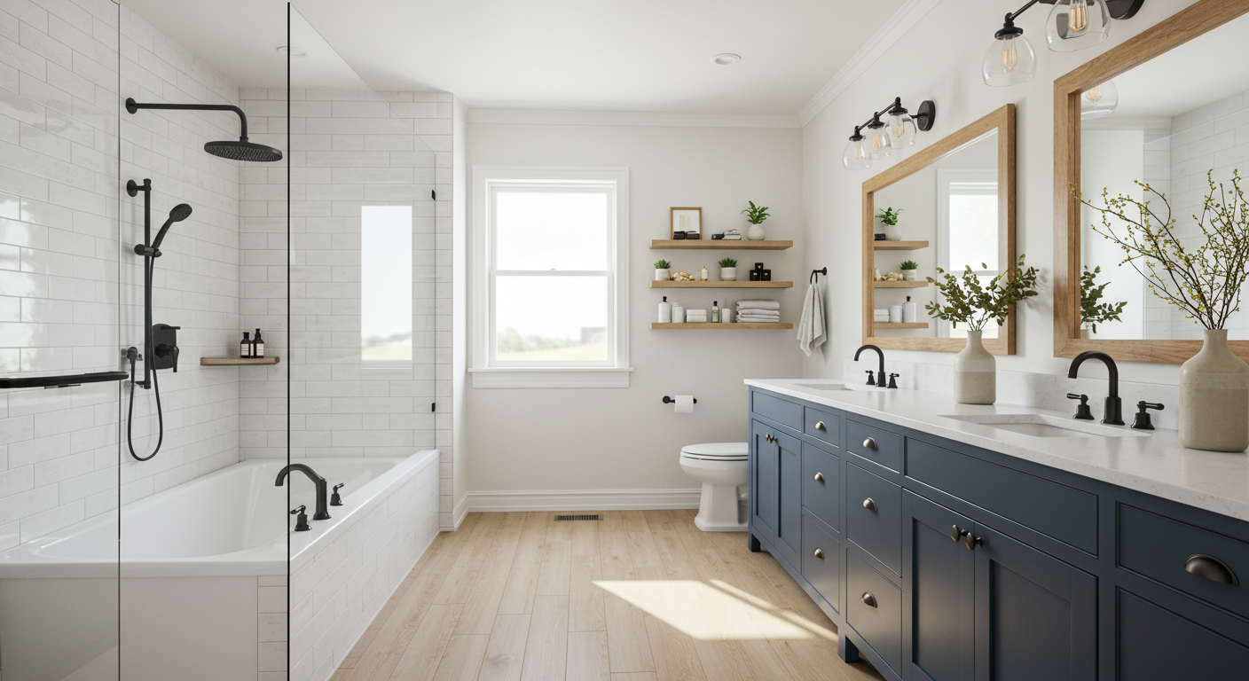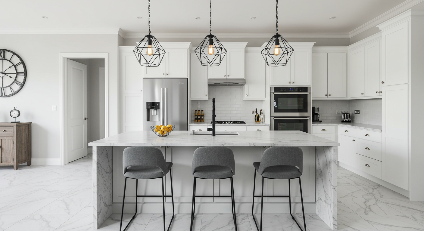 The second place that can be groan-inducing when it comes to renovation is your home’s bathroom(s). A luxurious, peaceful bathroom is such a familiar home fantasy and easier to achieve than you might think. Because renovating a bathroom often requires plumbing work, it can be a more laborious endeavor. That being said, there are changes you can make without demolishing your space. Tile is what really gives a bathroom its sense of design. If yours looks dated, you can switch it out for an upscale option that adds an elegant touch to the home. Larger cut tile slabs are very popular and will immediately make the space look more modern. If you’re willing to touch the pipes, you could add in a soaking tub or replace the sink fixtures.